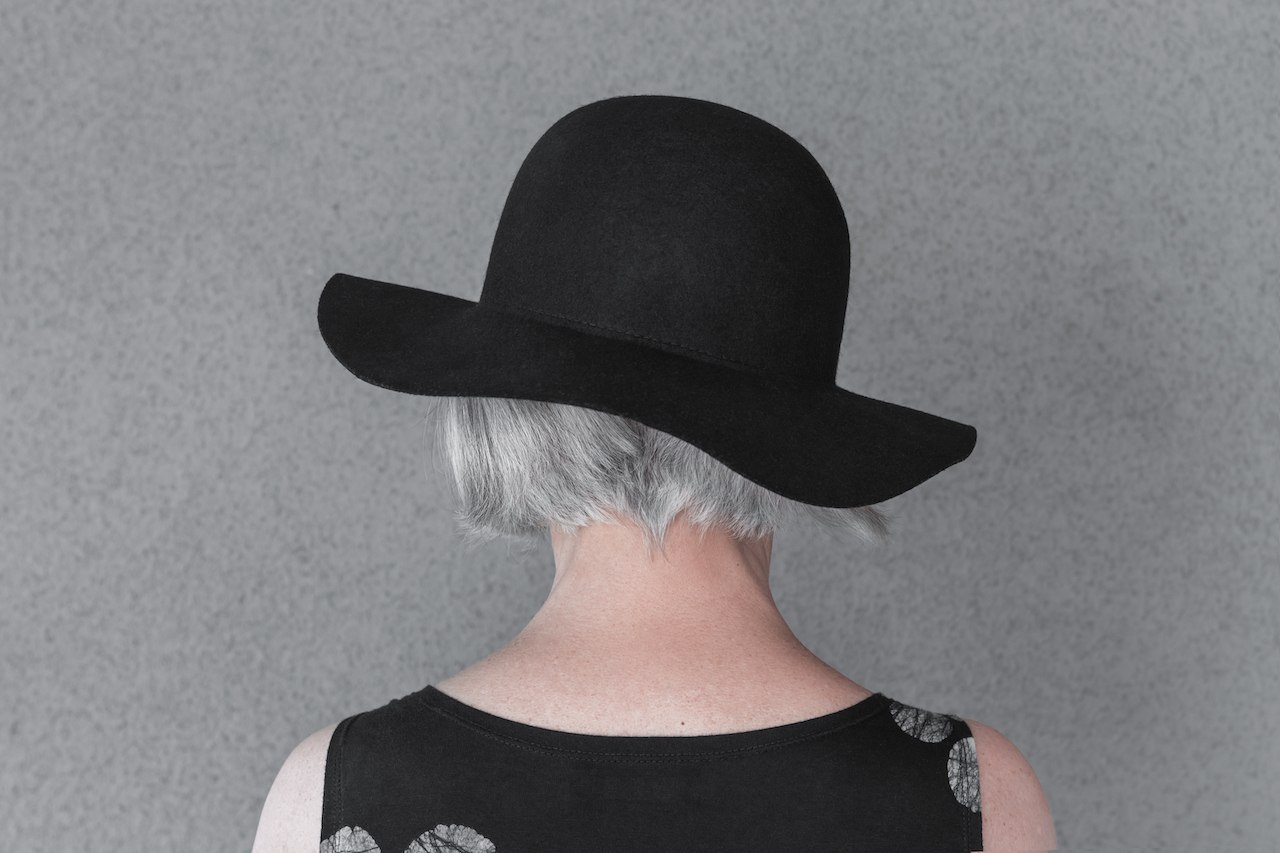 グレイヘアの方は、グレーやネイビーの帽子が上品に決まりますよ。
